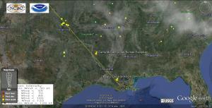 I have plotted 2 NOAA points on Google Earth which are the two positions for Hurricane Isaac as it hit land. I also plotted the position of the massive Bayou Corne Sinkhole, which it struck head-on. I also downloaded the latest USGS Earthquakes (2.5+) for the past week. I also plotted the location of the underground explosives bunker explosion at Camp Minden. You might now be thinking to yourself, what a freak this guy is…