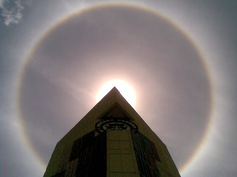 Sun Halo appeared in Padang,Indonesia two days after The 7,6 Magnitude Earthquake destroyed surrounding areas, captured on October 02nd,2009 11.09 AM