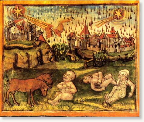“The first outbreak of the Plague in Europe followed an unusual series of events. Between 1298 and 1314, seven large “comets” were seen over Europe; one was of “awe-inspiring blackness.” To the people of Europe, these sightings were considered omens of the Plague which soon followed.