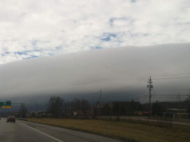 Saw this same site tonight. The massive cloud was stretching west to east even curving on the horizon. It headed pretty quickly north over Memphis. I tried to snap a few pictures, but the light is low and the picture quite blurry.