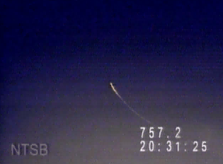 The NTSB concluded that “the witness observations of a streak of light were not related to a missile and that the streak of light reported by most of these witnesses was burning fuel from the accident airplane in crippled flight during some portion of the post-explosion, preimpact breakup sequence”.[111] The NTSB further concluded that “the witnesses’ observations of one or more fireballs were of the airplane’s burning wreckage falling toward the ocean”.[111]