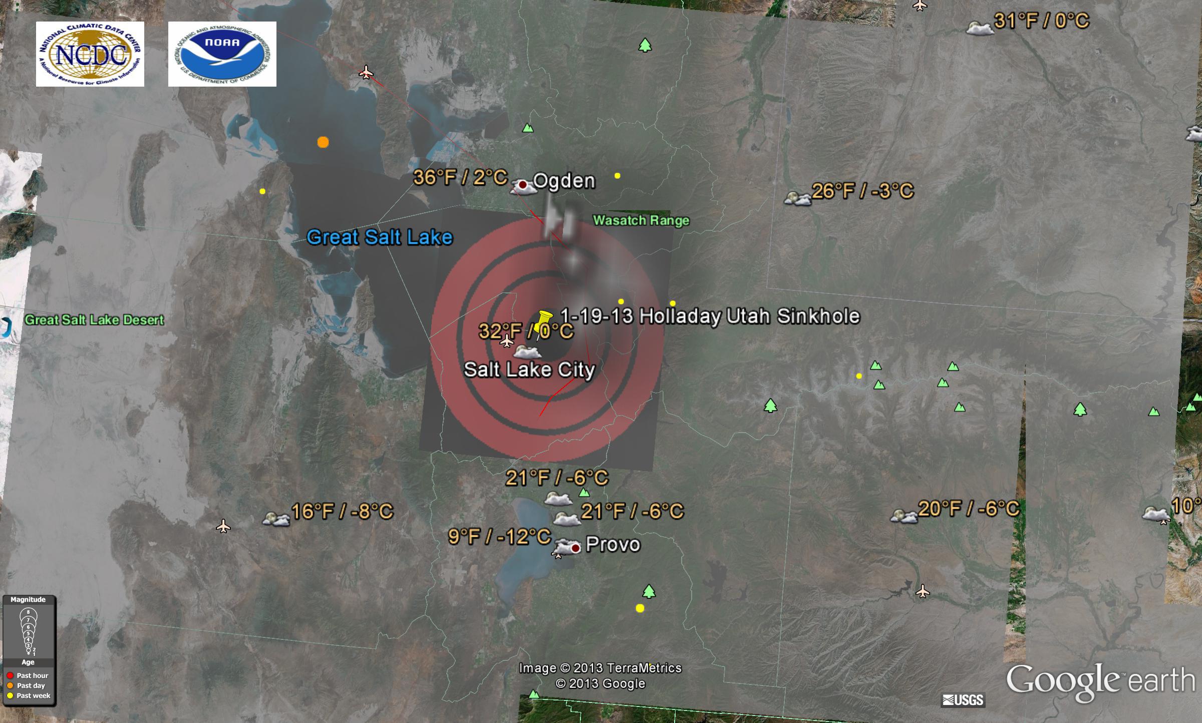 One of the things that concerns me, among many, about this energetic particle, if it exists, is that it can carry a very powerful electromagnetic charge at its surface as it shreds and condenses atoms and ionizes its surroundings. Even if there is no moisture around to collapse and create severe turbulence, I believe it can create electromagnetic disturbances in anything it passes through. I have mentioned this many times. So I mentioned earlier today that I was seeing some strange radar hits over the sinkhole in Holladay, Utah as I show in the picture. So here is what occurred in the area today as reported in the news: