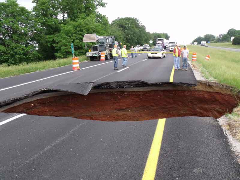 Once interesting one on the list is from 2010. A large sinkhole opened up in Shelby County, TN and shutdown the highway. Massive flooding also occurred in the area.