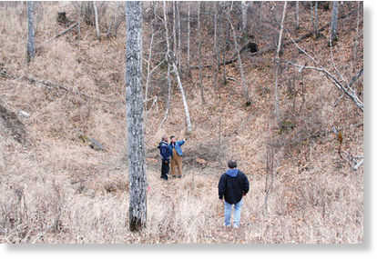 The spectacle that confronted Kulik as he stood on a ridge overlooking the devastated area was overwhelming. To the explorers’ surprise, no crater was to be found. There was instead around ground zero a vast zone (8 kilometres [5.0 mi] across) of trees scorched and devoid of branches, but standing upright. Those farther away had been partly scorched and knocked down in a direction away from the centre. Much later, in the 1960s, it was established that the zone of leveled forest occupied an area of some 2,150 square kilometres (830 sq mi), its shape resembling a gigantic spread-eagled butterfly with a “wingspan” of 70 kilometres (43 mi) and a “body length” of 55 kilometres (34 mi).[21] Upon closer examination, Kulik located holes which he erroneously concluded were meteorite holes; however, he did not have the means at this time to excavate the holes.