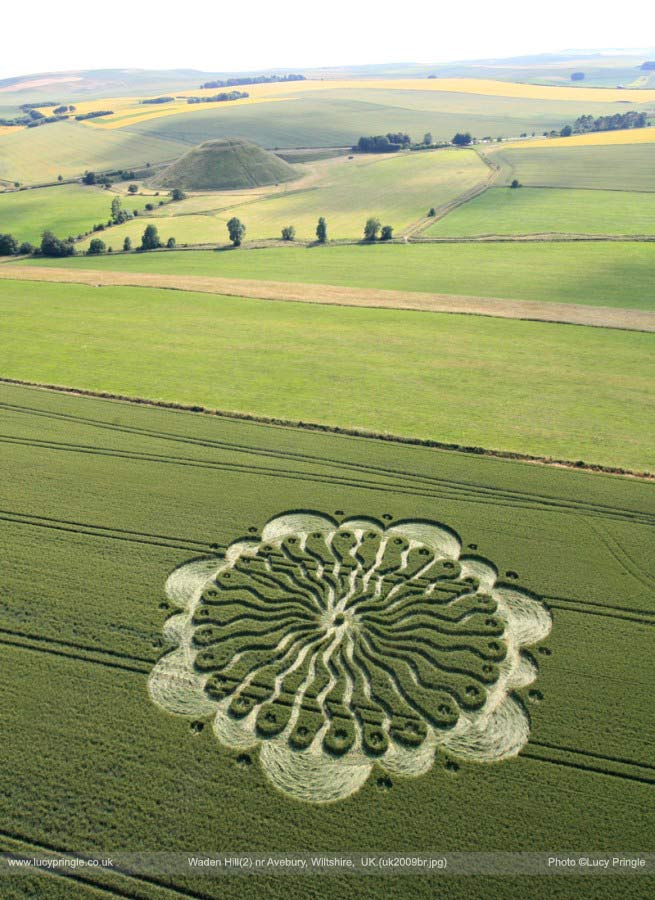 That crop circle showed up at Waden Hill (2), near Avebury , Wiltshire on 1st July 2009. It shows 28 tadpoles in a radial arc from a center point. I hope you all can see that as I do my research on Dark Energy why I am a little “spooked” every time I read research in one area of string theory and dark energy and I tend to see a crop circle symbol showing us something similar, maybe I am just connecting too many things, I do not know. This has led me to believe that whoever or whatever is creating many of those circles they are trying to help us and they appear to know a lot about quantum behavior.