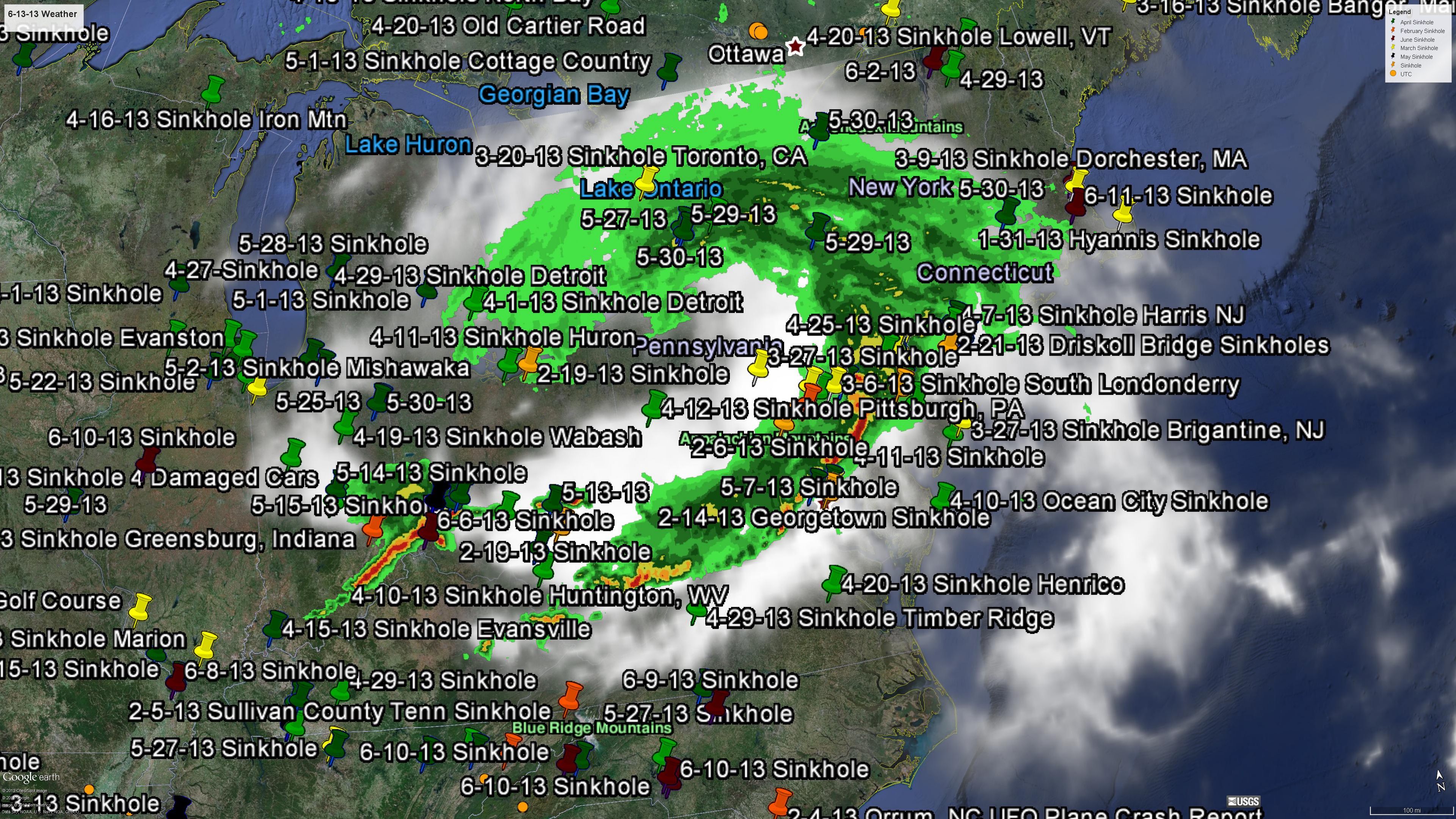 So many sinkholes and strong jet streams in the Midwest and East, take your pick. Are we getting hammered by strings and particles of dark/vacuum energy as my research shows? Something is causing that storm to wrap around, is it those sinkholes where the strings are passing through the Earth? As an engineer I see that as megatons of vacuum condensing of water vapor and release of electromagnetic energy, probably from dipole/anapole interaction from the particles/strings with the surrounding atmosphere as they ionize their surroundings. Air and water vapor should not be able to do this on its own. It will be interesting to see if any double rainbows pop up in the area afterwards. I have only been tracking sinkholes for 6 months so I do not know how many are usual, but we have boatloads over here.