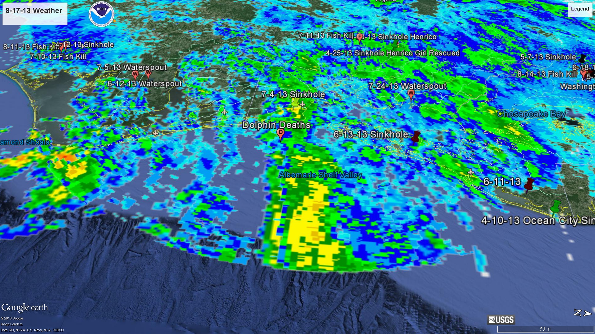 Record Rainfall, fish and marine mammal deaths, sinkholes, waterspouts