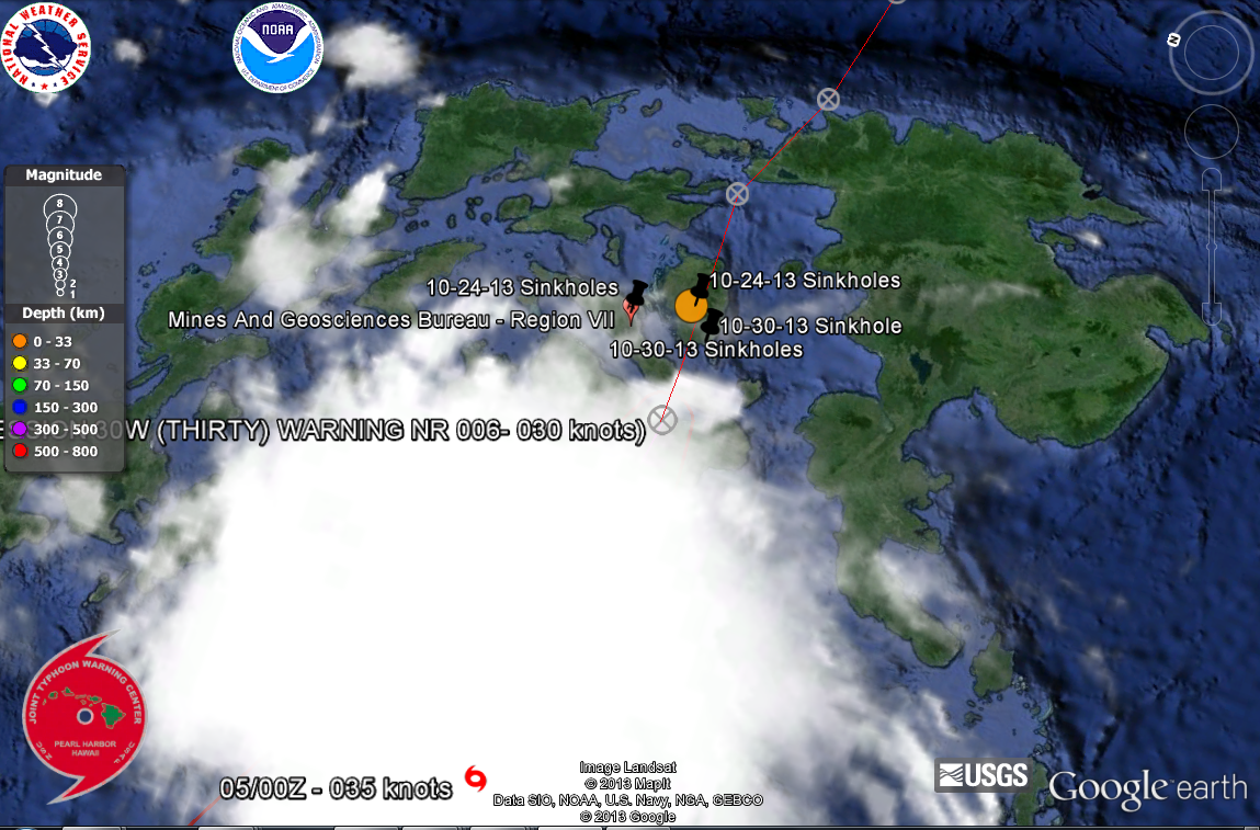 That Damn Tropical Storm went directly over the epicenter of that 7.1 EARTHQUAKE in the Phillipines and where all of the 100 SINKHOLES opened up and the PHOSPHATE from ionization of dissolved oxygen combining with ionized phosphorous turned the water YELLOW. What a Damn coincidence…