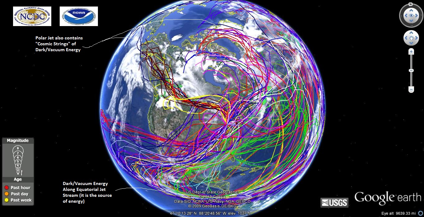 That equatorial jet stream is full of “cosmic strings” of dark matter according to my research. That is what really powers this planet and those hurricanes coming off the horn of Africa. You didn’t think air and water vapor just motored along at 200+ MPH in jet streams did you? The Polar jet is full of this stuff also. This is our decaying quantum gravity field in my model.