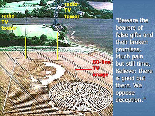 Crabwood of August 15 was one of the most famous crop pictures in modern history, but no one could really understand its message. As shown in two pictures below, the schematic face of a “grey alien” was drawn within a large “rectangular box” that contained 60 horizontal lines, just as for an early “mechanical” TV image, chosen in the 1930’s because we use 60 Hz AC power. The variable width of each line then creates different “gray scales” (modern TV screens use far more lines to give better pictures):