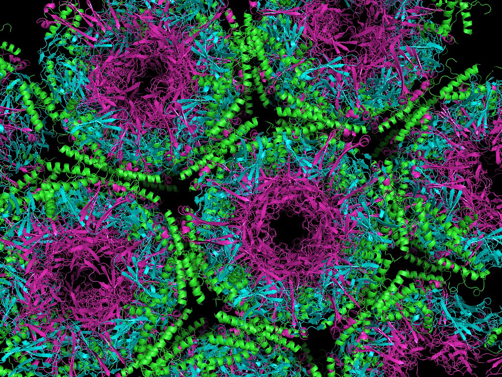 A prion, pictured above, is an infectious agent comprised only of a protein in misfolded form. It lies in stark contrast to all other known infectious agents; even the simplest bacterium or virus contains nucleic acids (either DNA, RNA, or both) but amazingly, prions seem to have neither. Instead, they propagate by transmitting a misfolded protein state – meaning that when a prion enters a healthy organism, it induces existing, properly folded proteins to convert into the disease-associated, prion form. The prion essentially acts as a template to guide the misfolding of more cellular proteins; newly formed prions can then go on to convert more other proteins, triggering a chain reaction that produces the prion form in exponentially large numbers.