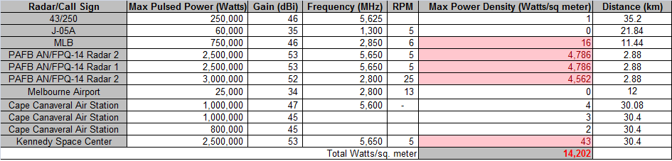 The radar boys will tell you that the pulses are only active for 1/1000 of a second so you can divide the 14,202/1000 and you only have 14.2 Watts average from all of the radars combined, which sounds harmless. I am going to tell you that nature does not act that way. The only way she can “average” the overlapping pulses (from all 11 sources) is to allow current to flow from the area of high power density to low, creating “amperage” or current in the lagoon as nature is absorbing and dissipating the pulsed energy entering the lagoon. In the end, we need to believe what nature is telling us, which is why I believe this is happening: