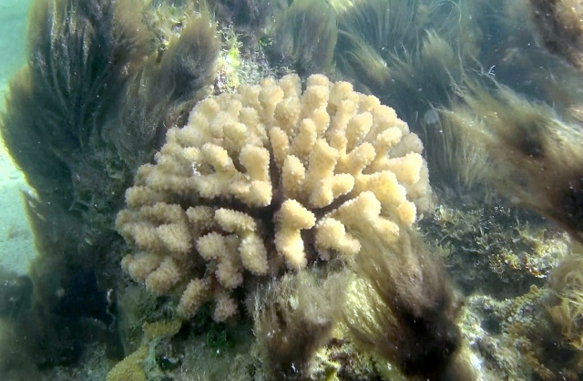 What I found was just stunning!! Hundreds of perfect healthy corals growing right in the middle of the algae! How can this be? The only live healthy place in Anini Bay in front of a polluted creek!