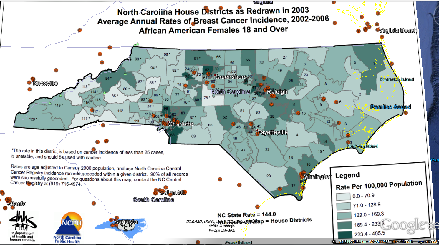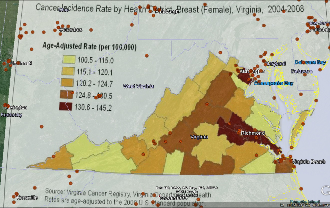 Good Visual Correlation between Pulsed Microwave Radar Locations and Higher Incidence of Breast Cancer in NC
