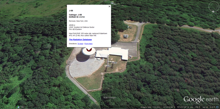 Radiation Profile around one ARSR-4 Radar and two WSR-88 Radars. Cancer cluster pins shown. Highest scattered radiation intensity will vary with cloud height and radar dish angle
