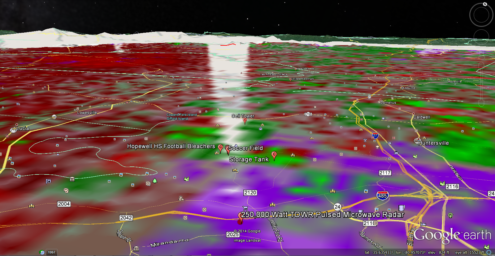 Most of the TDWR Radar Pulsed Power is being absorbed and/or reflected in the area of Hopewell High School
