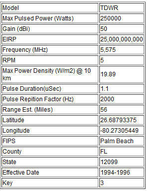 Airport TDWR Radar Pulses GROSSLY EXCEED 1000 W/m2 @ 5.6 GHz