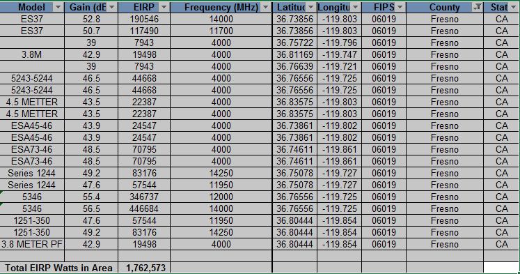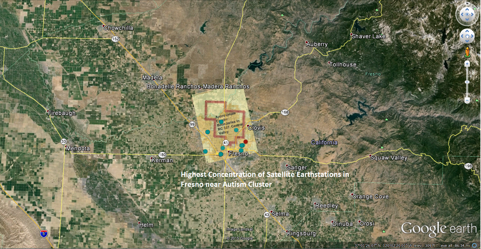 Autism Cluster in Fresno matches area of highest number of high EIRP satellite Earthstations in central California and high EIRP airport radar.