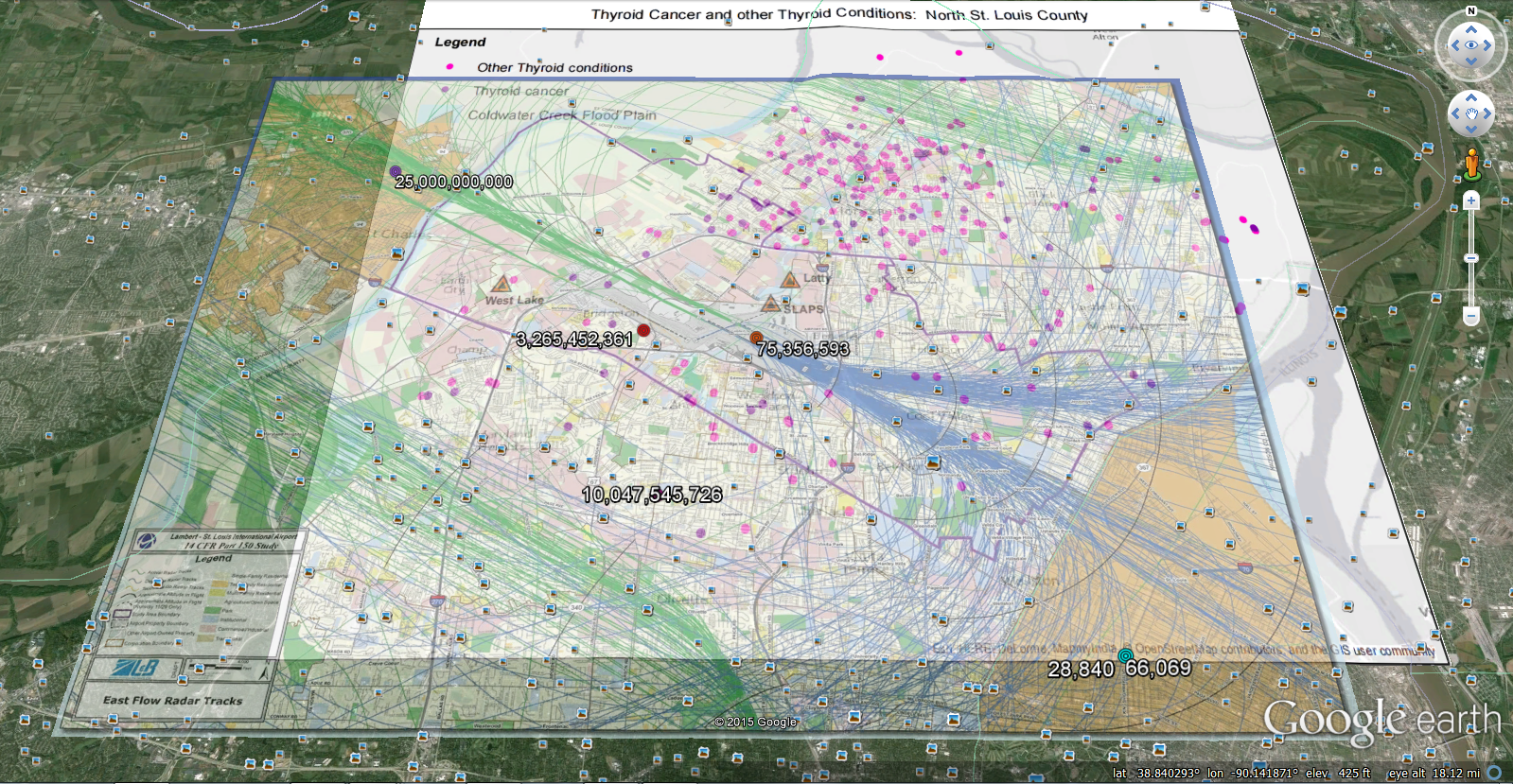 Disease is due to increased reflected/refracted EM radiation from radars (off airplanes/clouds) around airport and inside/below low flight paths