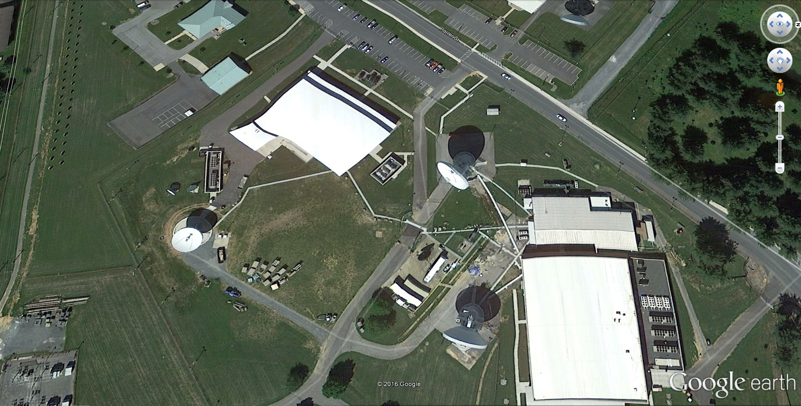 Three extremely high power/high gain satellite communications antennas just inside the fence at Ft. Detrick