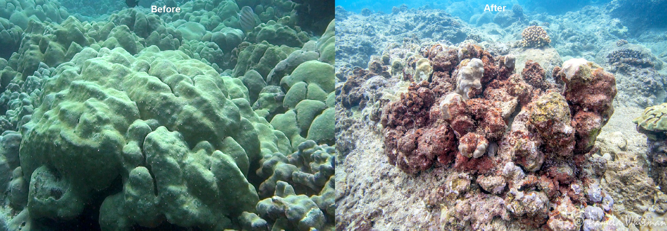 Subject: Mound corals before and after at Sharks Cove