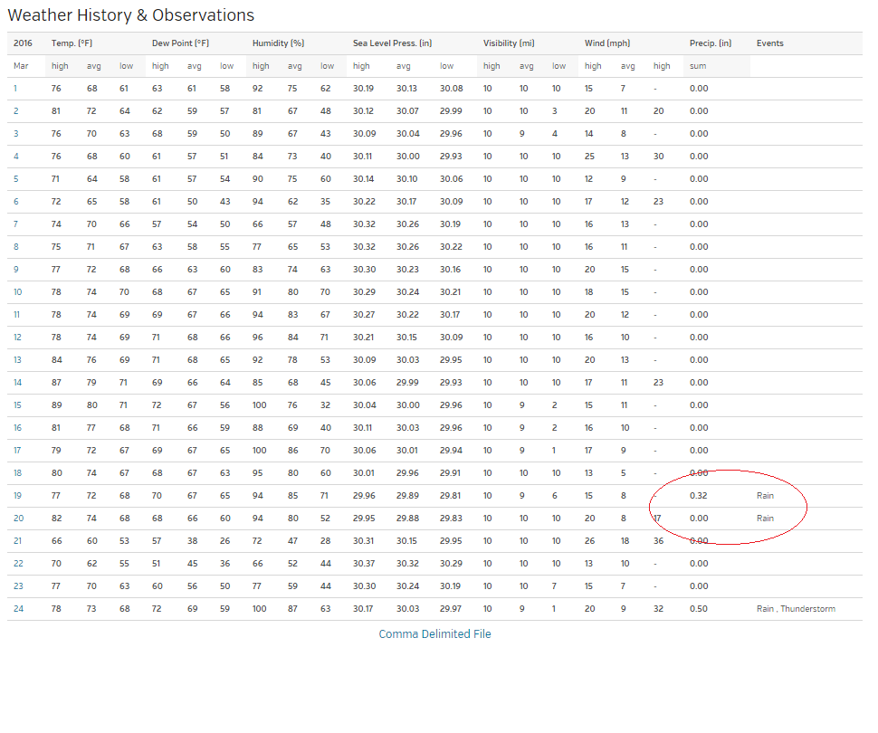 It only rained on March 19th & 20th but the oxygen levels began dropping 3 days earlier with increased voltage in the atmosphere (radar reflectivity) [5]