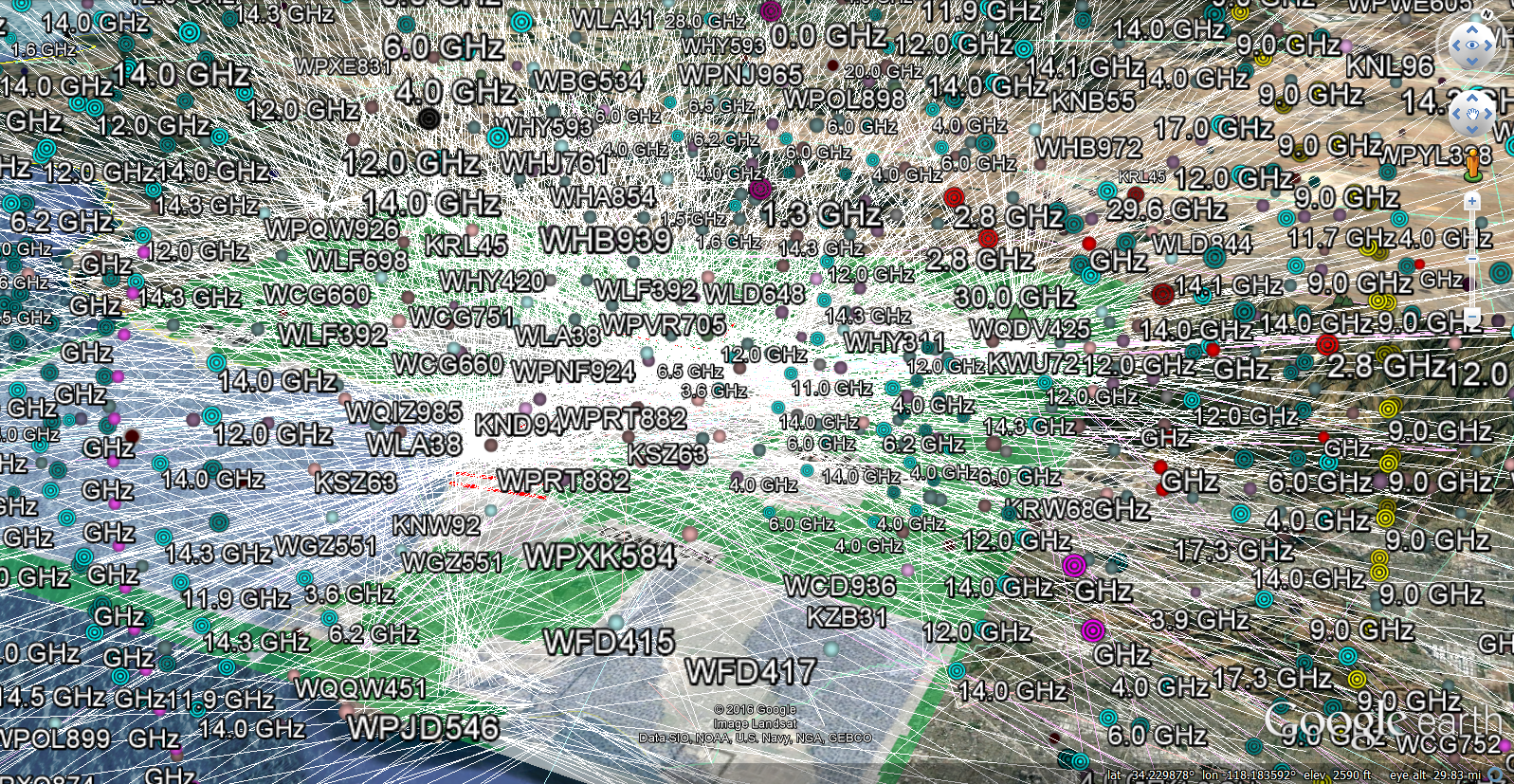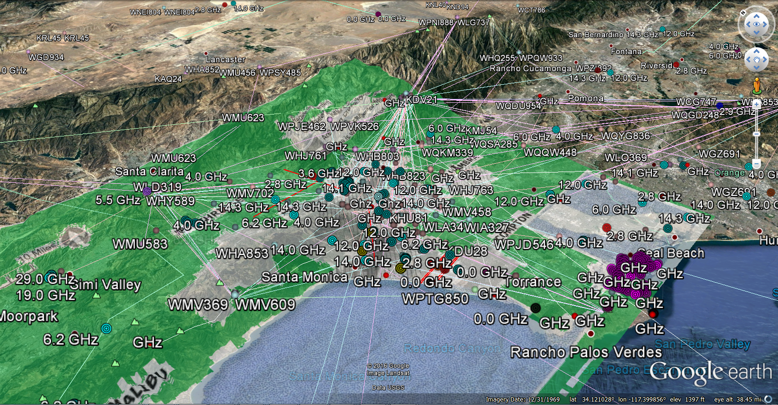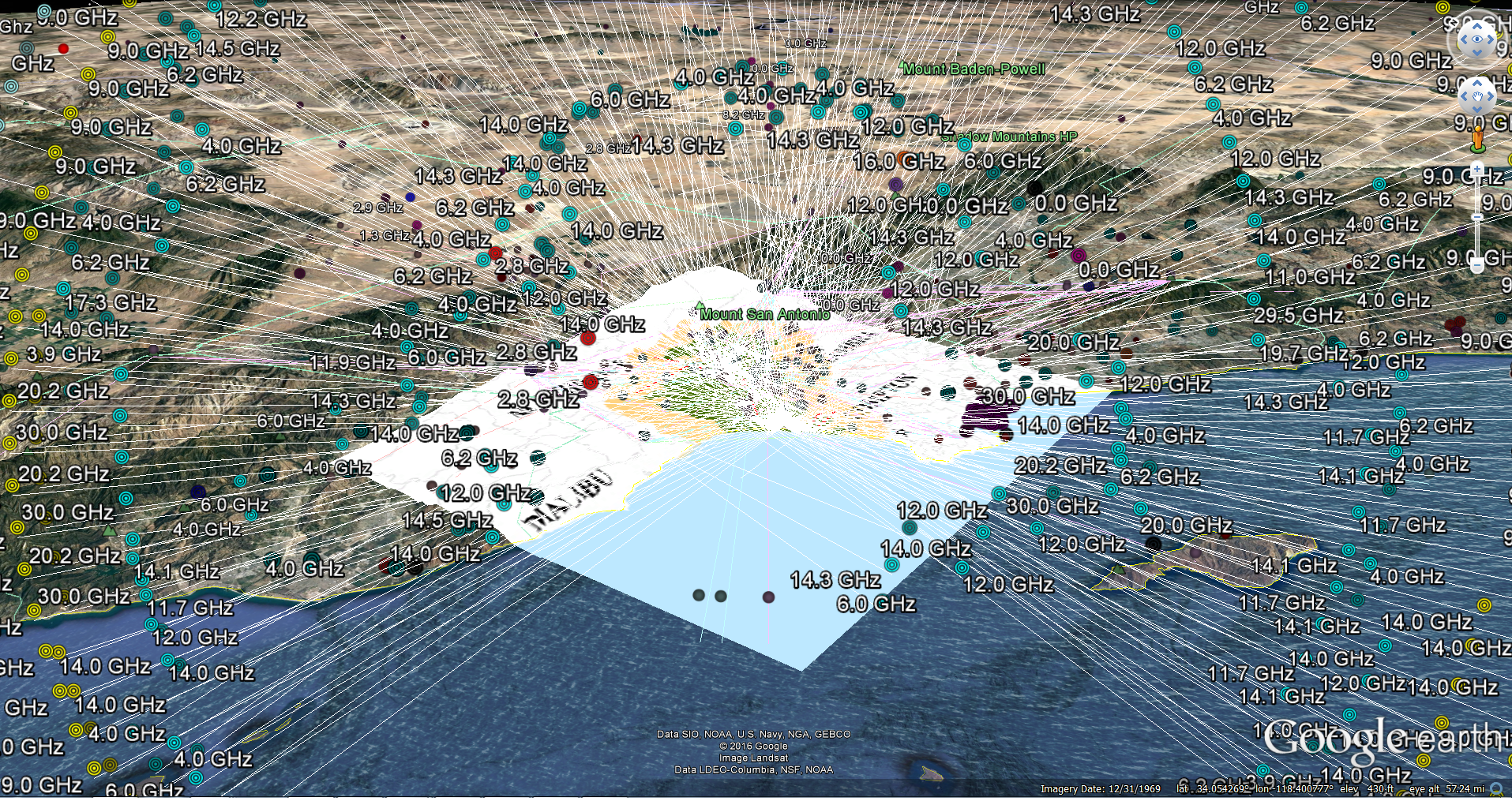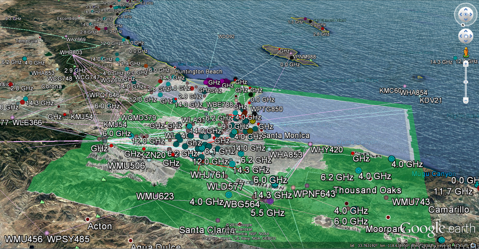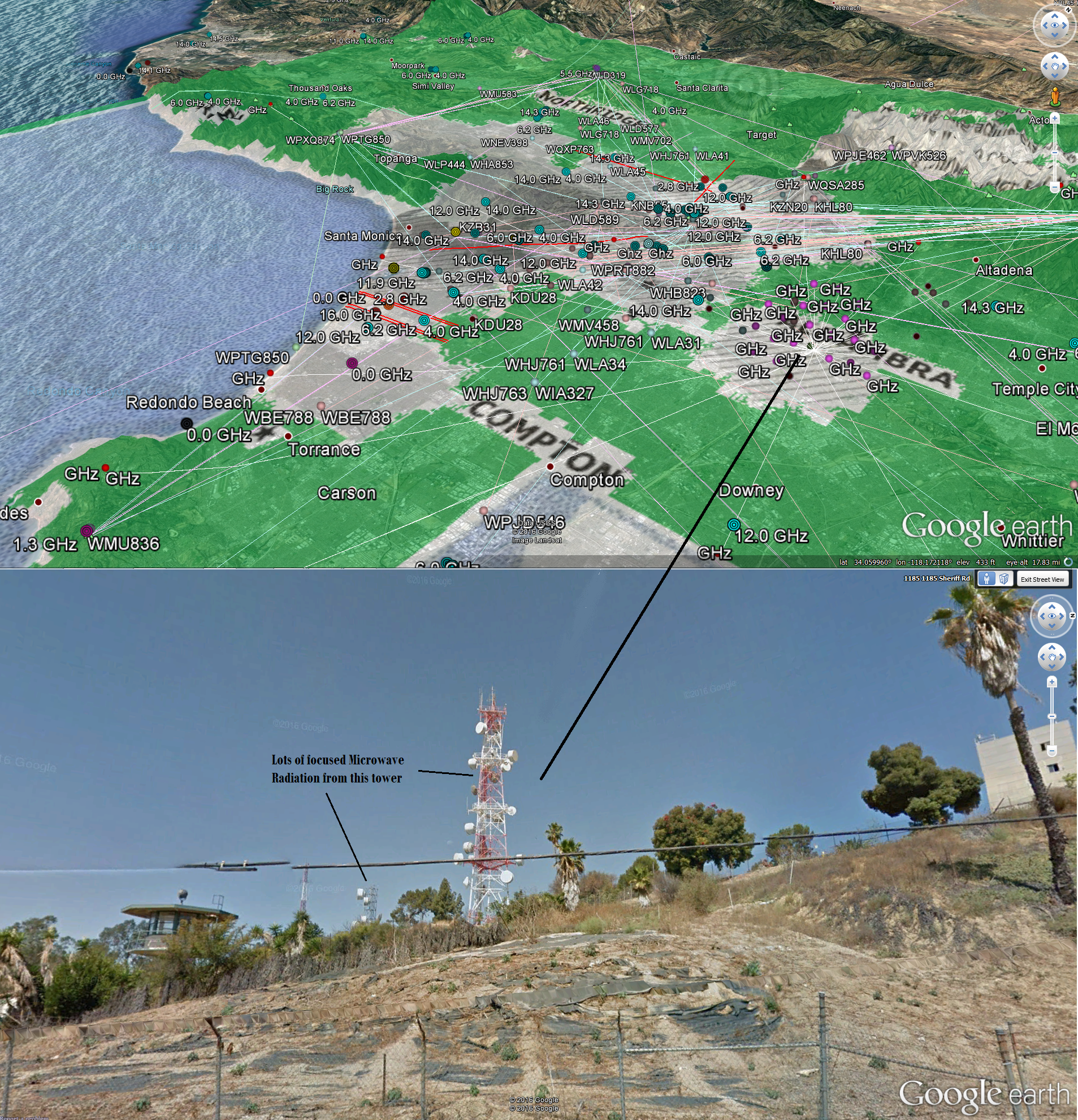 Also hundreds of overlapping GHz pulsed microwave marine radars on the boats at the Santa Monica Marina and Long Beach Marinas