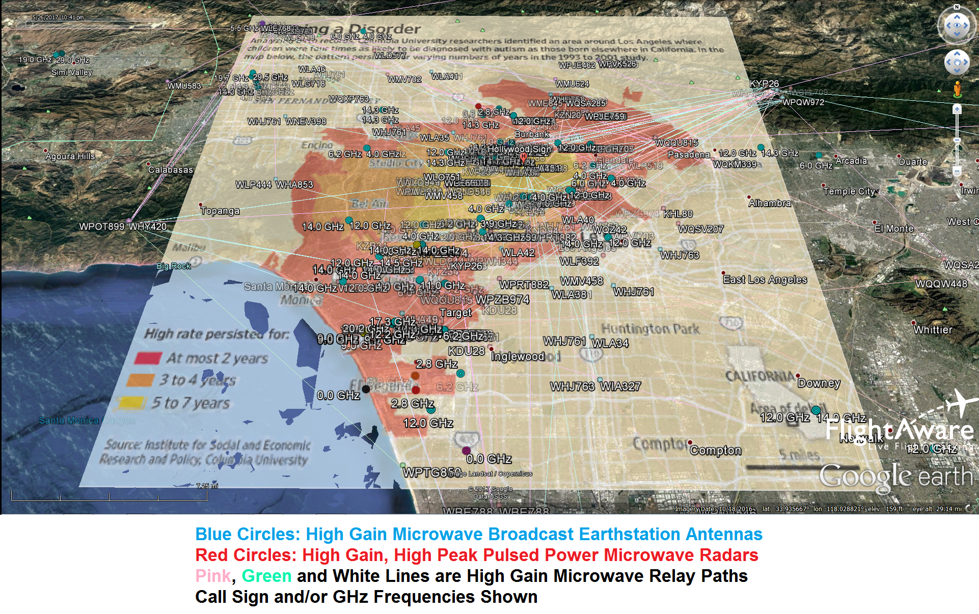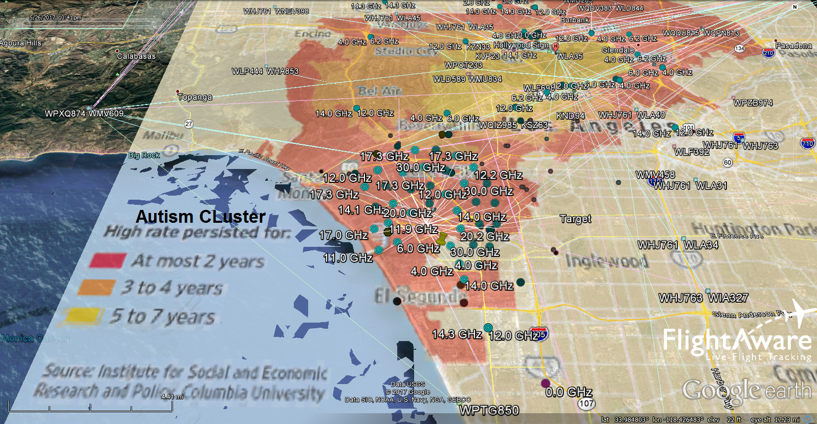 And now I think you will understand the probable cause of that persistent autism cluster in Northern Los Angeles – electromagnetic radiation pollution from multiple high gain microwave radiation sources. And this does not include the other sources of radiation in that area such as cell towers.