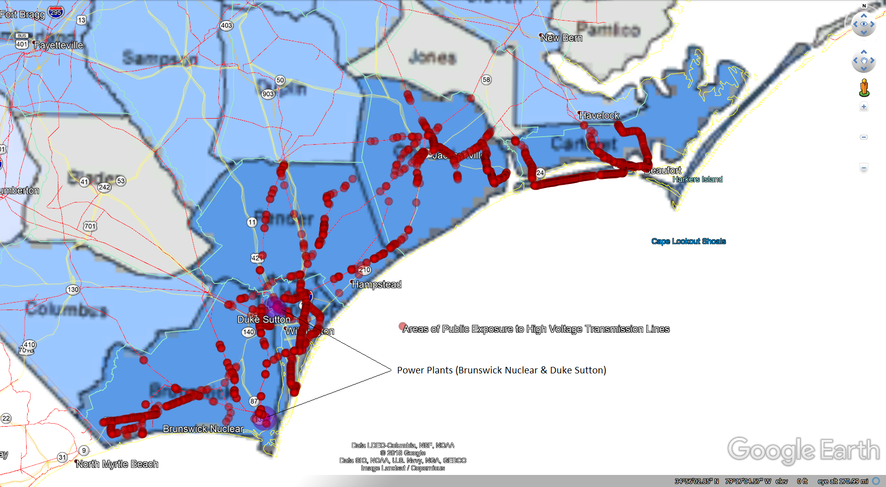 That coastal area has a high population density and a high concentration of high voltage transmission lines crossing public areas from the two local power plants. Electrons don’t actually stay on those high voltage lines, they take all paths and ionize the nitrogen in the air and emit UVc radiation and ionize us.